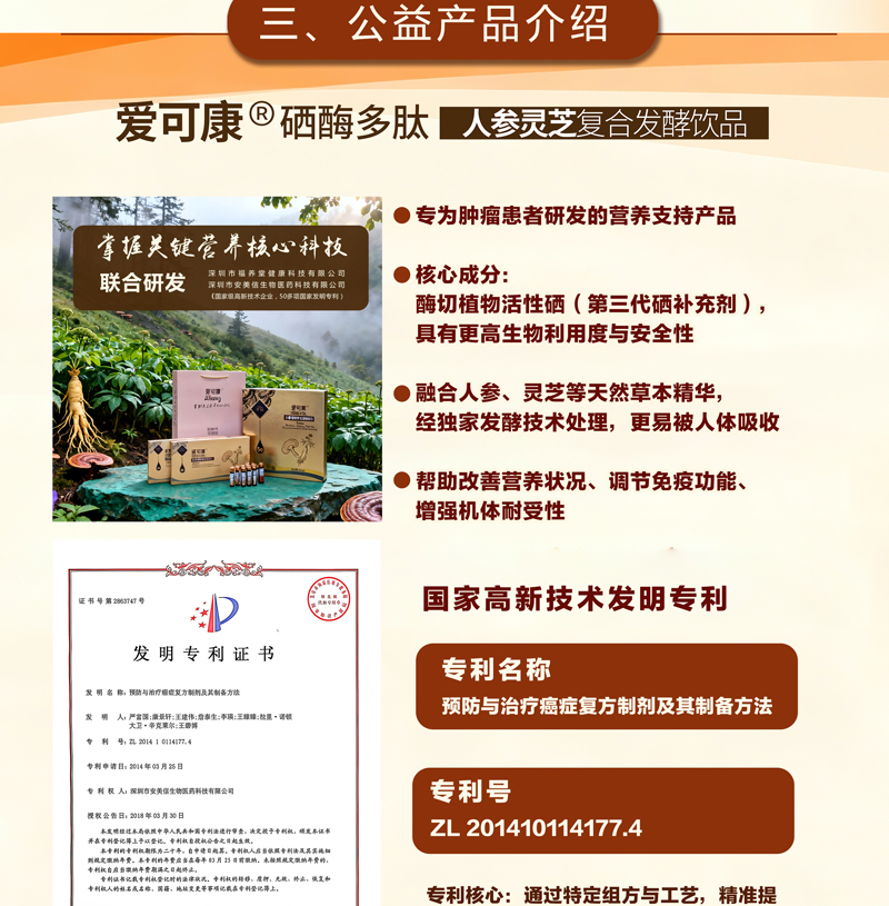【爱可康】关爱肿瘤患者公益行动——免费申领爱可康硒酶多肽人参灵芝复合发酵饮品1份